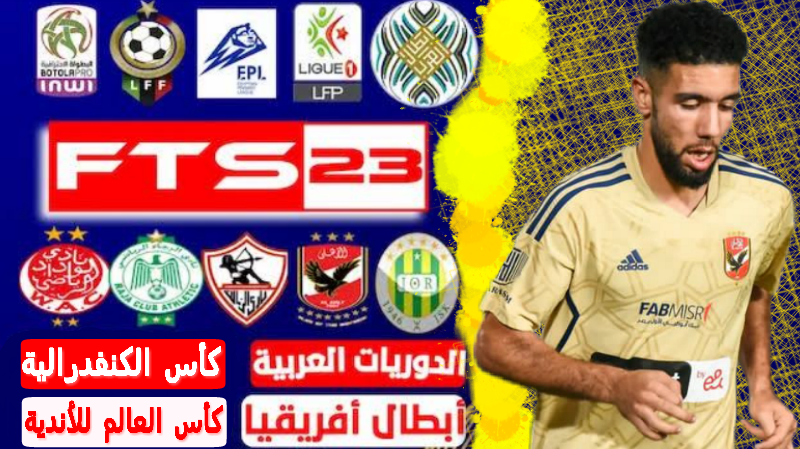 تحميل لعبة FTS 2023 النسخة العربية مع الدوري المصري و الدوري التونسي و الدوري المغربي و الدوري الجزائري و الدوري السوداني و الدوري الليبي و مع دوري ابطال افريقيا و كأس الكنفدرالية الأفريقي و كأس السوبر الأفريقي و كأس السوبر المصري و كأس الرابطة المصري و كأس مصر و كأس زايد للأندية الأبطال و البطولة العربية و مع كأس العالم للأندية المغرب 2023 ومع كأس العالم قطر 2022 ومع كأس أمم إفريقيا و كأس أمم اسيا و مع جميع المنتخبات العربية ومع كأس العرب مع الدوري المصري الدرجة الثانية بآخر الانتقالات و الاطقم بجرافيك PS5 باوجه واقعية بدون إنترنت بحجم صغير لجميع أجهزة الاندرويد الضعيفة